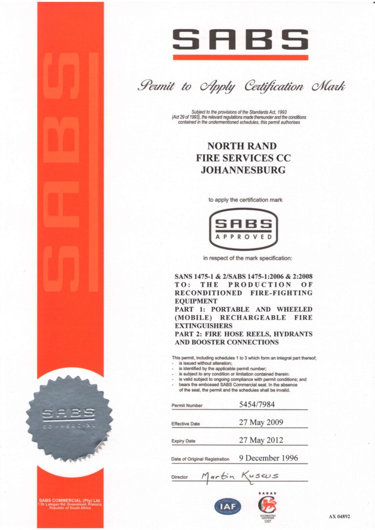 In terms of the Occupational Health & Safety Act only SABS approved companies, who meet with the requirements of SANS 1475 (Part 1 & 2), are permitted to work on portable fire fighting equipment.